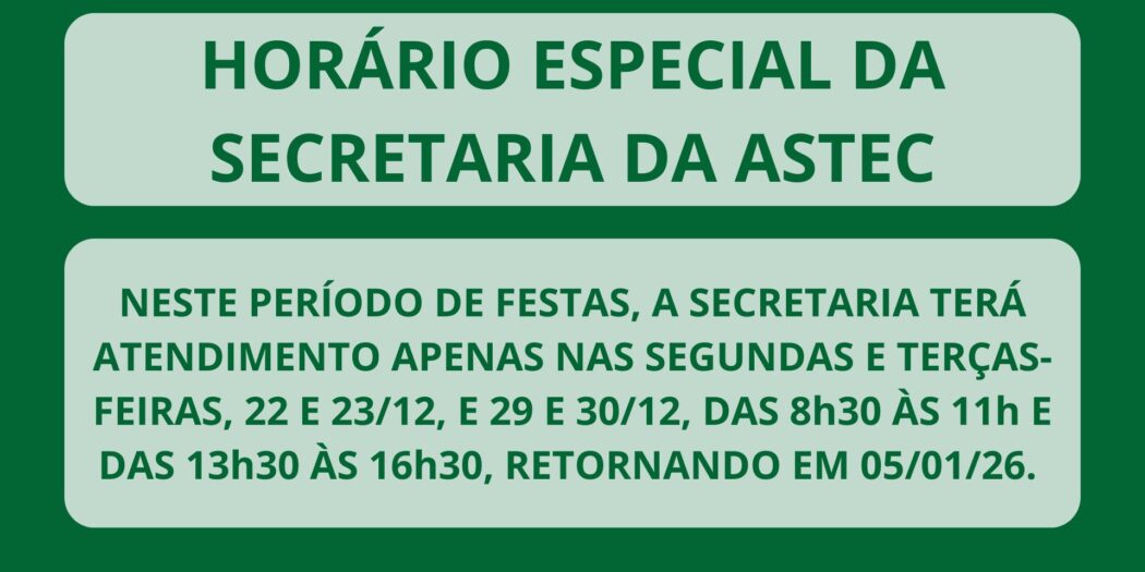 Previsão orçamentária 2025 | A Assembleia Geral on-line da Astec, pelo Google Meet, é hoje: às 18h30 (1ª chamada), 19h (2ª chamada). Participe!