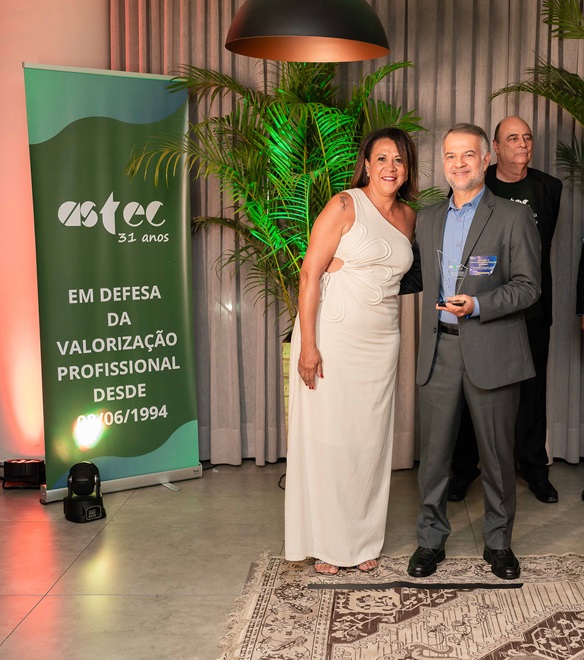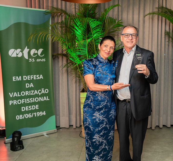 A entrega da homenagem foi feita pelo engenheiro civil Luis Ferrari Borba, diretor de Relações Trabalhistas e Sindicais da Astec.