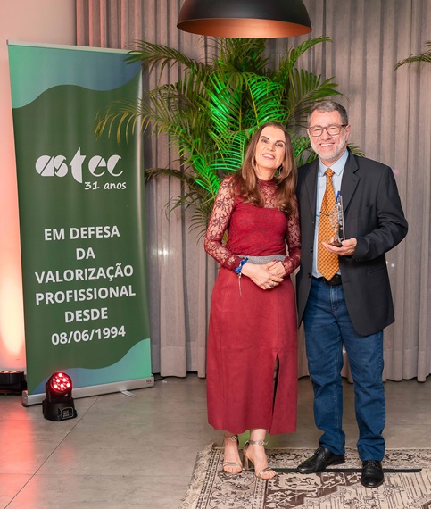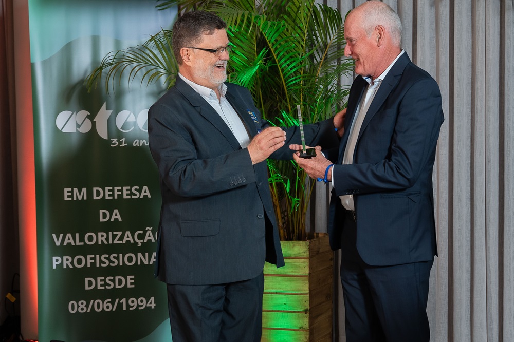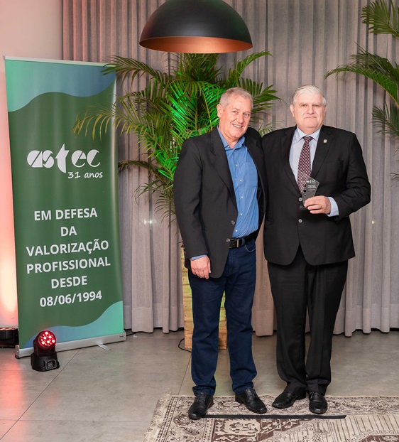 A entrega da homenagem foi feita pelo engenheiro civil Carlos Bernd, diretor financeiro da Astec.