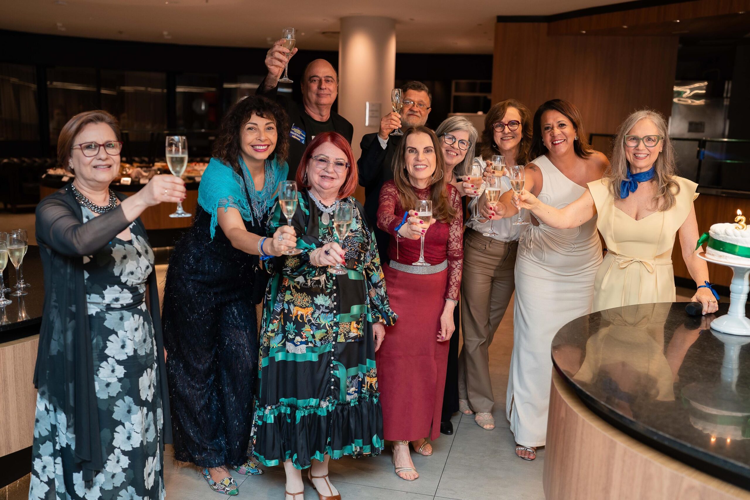 A entrega das homenagens às aposentadas e aos aposentados contou com a presença dos presidentes do Conselho Deliberativo, engenheiro agrônomo Irineu Pedro Foschiera, e do Conselho Fiscal, engenheiro civil Paulo Robinson da Silva Samuel, além da Diretoria Executiva: professora Carmen Padilha, presidente; psicóloga Elaine Rosner Silveira, vice-presidente; bióloga Isabel Cristina Junqueira, diretora Administrativa; engenheiro civil Carlos Adolfo Bernd, diretor Financeiro; engenheiro civil Luis Ferrari Borba, diretor de Relações Trabalhistas e Sindicais; bibliotecária Carmem Lapolli von Hoonholtz, diretora Cultural; e enfermeira Adelaide Kreutz Pustai, diretora de Relações com Aposentados e Pensionistas, que conduziu a cerimônia de entrega dos troféus ao lado da associada e Relações-Públicas Fabiana Espírito Santo.