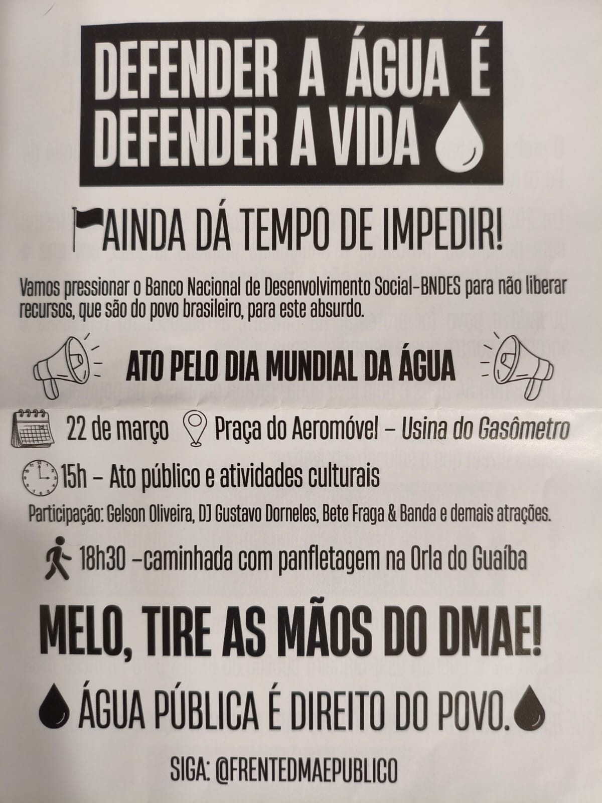 ATO PELO DIA MUNDIAL DA ÁGUA | AGENDE-SE E PARTICIPE! É NESTE DOMINGO.