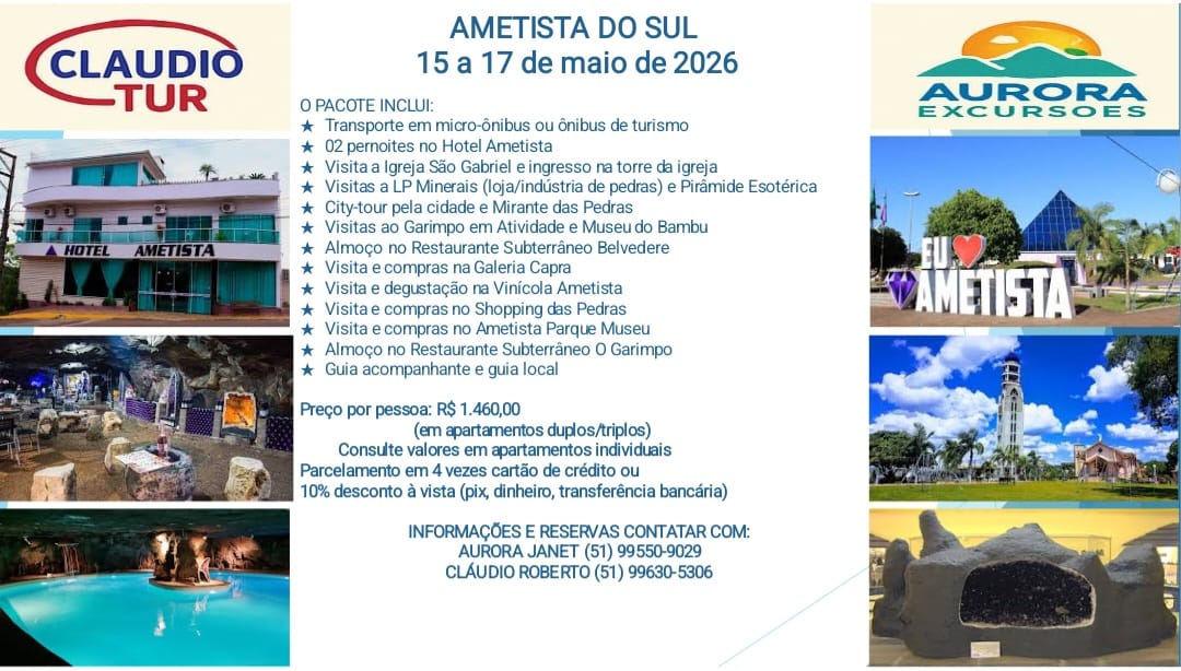 Claudio Tur e Aurora Excursões oferecem: