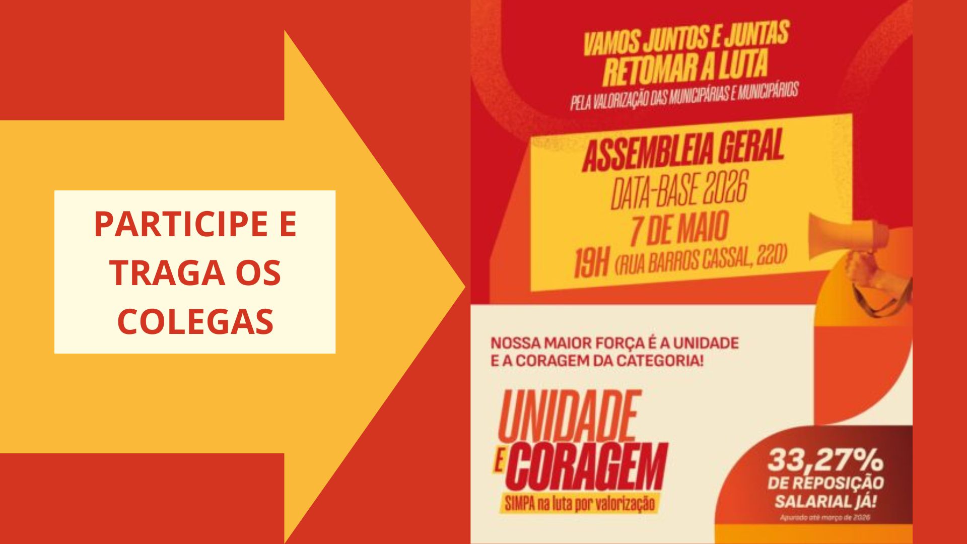 DATA-BASE 2026 | SOMENTE A UNIÃO NA LUTA NOS FARÁ AVANÇAR. PARTICIPE DA ASSEMBLEIA GERAL DE MUNICIPÁRIOS!